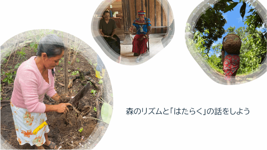 森で暮らす人たちの「はたらく」は、仕事と暮らしが溶け合い、自然やコミュニティとの循環の中で営まれています。今回は、実際にアマゾンを訪れたメンバーが、現地で見た「はたらく」の風景や気づきをシェアしながら、わたしたち自身の「はたらく」を見つめ直す小さな対話の時間をつくります。